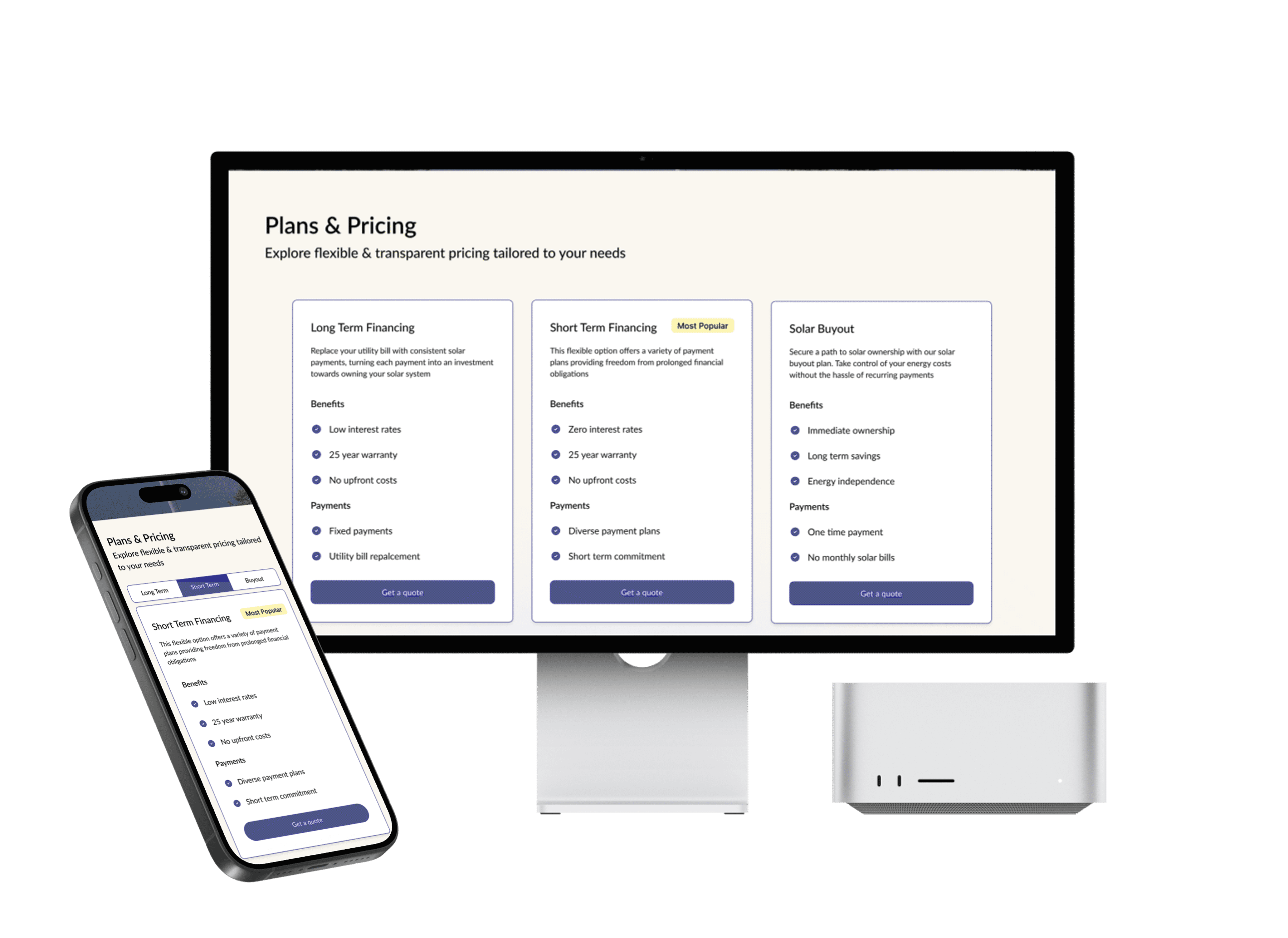 A refreshed mobile and web experience for Awake Solar that streamlines product education, pricing visibility, and lead submission. The redesign improves usability across devices and integrates with the CRM to support stronger conversions and customer engagement.