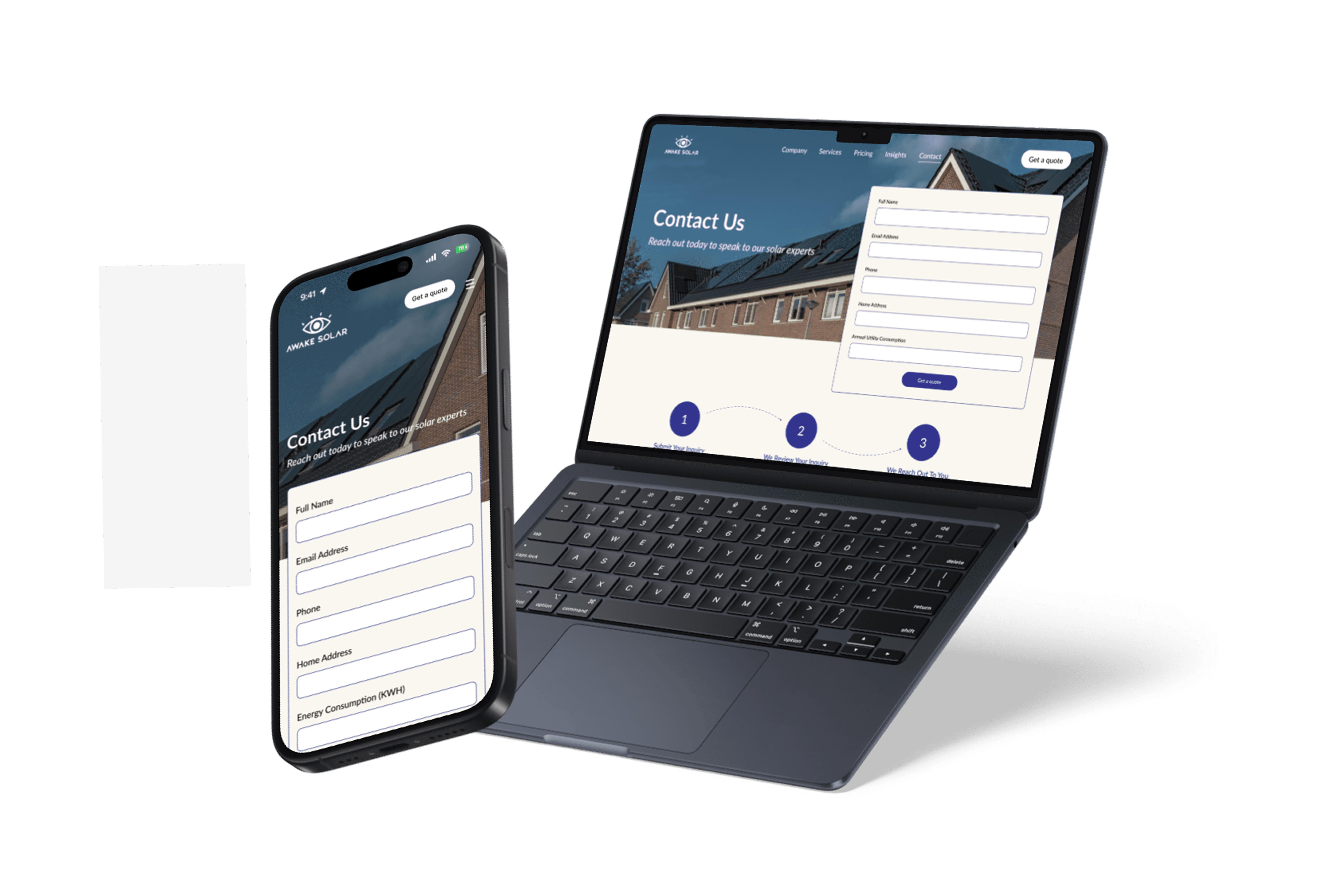 The Awake Solar website redesign modernized the brand’s digital presence and resolved major gaps in the customer journey. The updated experience made it easier for homeowners to explore solar solutions, understand pricing, compare products, and submit inquiries. In addition to UX improvements, the new site was integrated with the company’s CRM, enabling seamless lead tracking and automated follow-up.